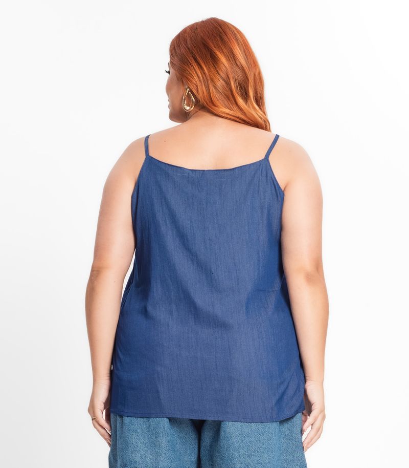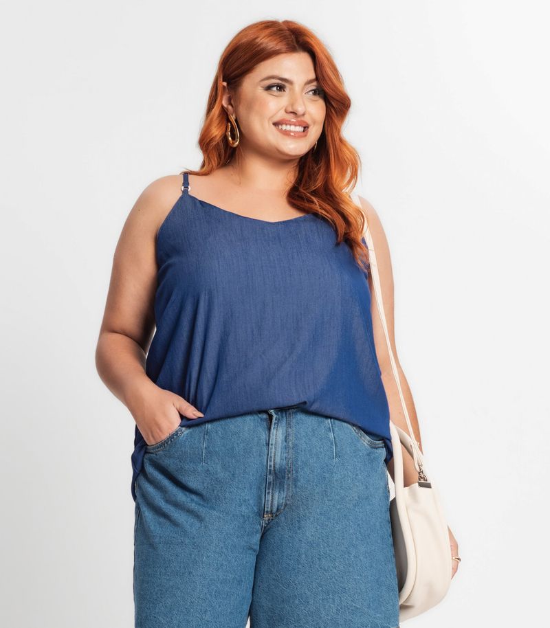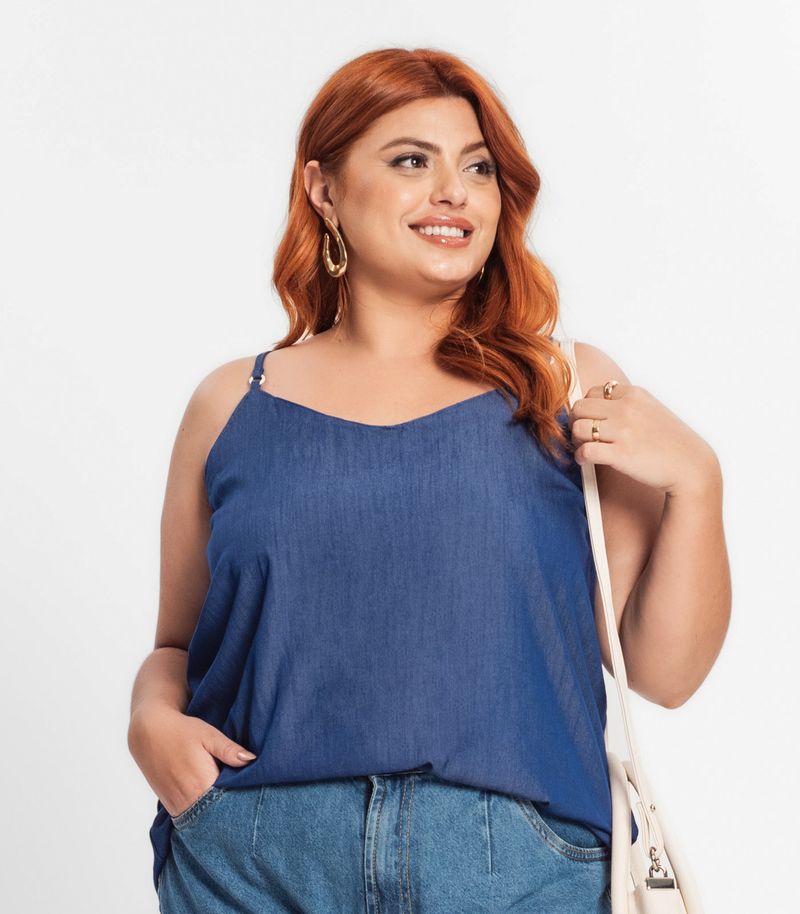 A Blusa de Alça Feminina Plus Size Secret Glam é uma combinação perfeita de conforto e estilo. Feita em new liocel, oferece uma sensação suave e fresca à pele. Seu design apresenta um friso formando uma azelha, adicionando um toque de elegância e ajuste personalizado. Com detalhes cuidadosos, a frente e as cavas são realçadas por revel, proporcionando um visual refinado. Uma peça versátil, ideal para criar looks casuais ou sofisticados.