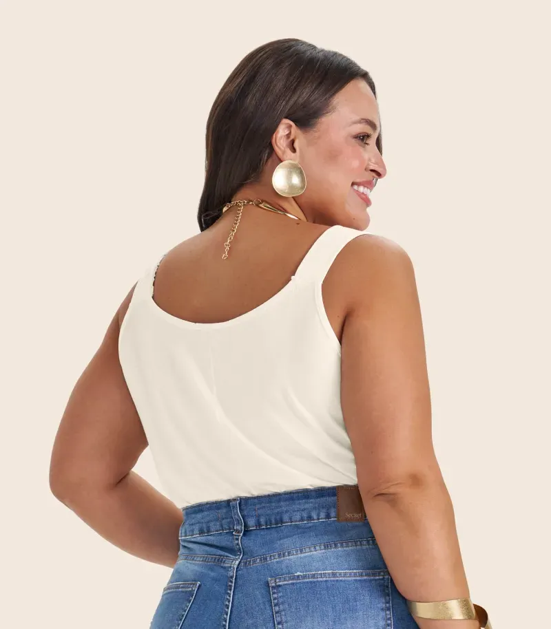 A Blusa de Alça Feminina Plus Size Secret Glam é a peça básica que não pode faltar no seu guarda-roupa. Confeccionada em viscotorcion, um tecido conhecido por sua durabilidade e toque macio, esta blusa proporciona conforto e estilo em qualquer ocasião. Seu design de alças finas oferece frescor e liberdade de movimento, sendo ideal para os dias mais quentes. Versátil, ela pode ser combinada com calças, shorts ou saias, adaptando-se facilmente a diferentes looks.