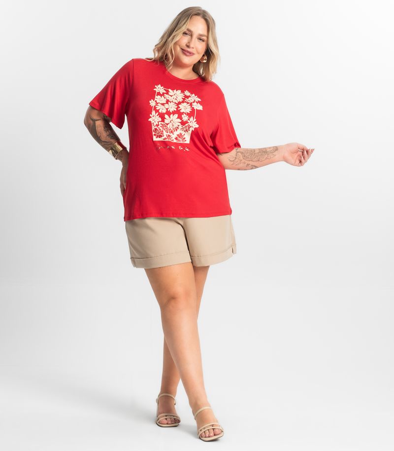 Plus SizeFemininoBlusas e CamisetasBlusa Feminina Manga Curta Secret Glam Vermelho