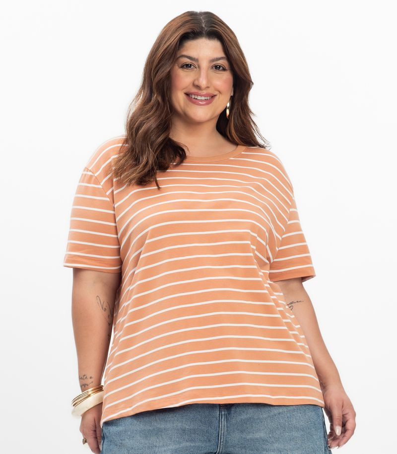 A Blusa Feminina Plus Size Gola Redonda da Secret Glam é confeccionada em cotton listrado fio tinto, garantindo durabilidade e cor viva. Com modelagem que valoriza o corpo, possui gola redonda clássica e mangas curtas, unindo conforto e estilo. O tecido macio proporciona toque suave e ótimo caimento, ideal para o dia a dia. Versátil, combina com diversas peças, sendo perfeita para compor looks modernos e cheios de personalidade.