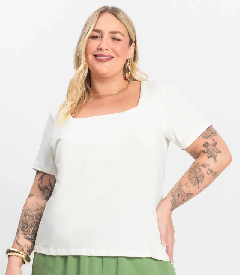 A Blusa Feminina Plus Size Secret Glam é a escolha perfeita para um visual confortável e elegante. Feita em cotton leve, proporciona um toque suave e caimento impecável. Seu decote quadrado adiciona um charme sutil e moderno à peça. Versátil e fácil de combinar, é ideal para criar looks casuais ou mais sofisticados. Esta blusa é indispensável no guarda-roupa feminino plus size, garantindo estilo e conforto em todas as ocasiões.