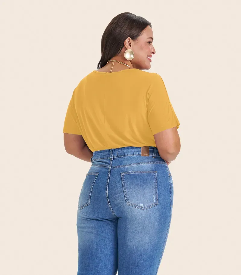 A Blusa Manga Curta Feminina Plus Size Secret Glam é uma peça essencial para qualquer guarda-roupa. Confeccionada em viscotorcion, um tecido conhecido por sua durabilidade e conforto, esta blusa oferece um toque suave e um caimento impecável. Com um design básico e versátil, ela é perfeita para compor diferentes looks, desde os mais casuais até os mais elegantes. As mangas curtas garantem frescor e liberdade de movimento, tornando-a ideal para o uso diário.