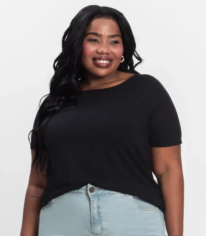A Blusa Manga Curta Feminina Plus Size Secret Glam é uma peça essencial para qualquer guarda-roupa. Confeccionada em viscotorcion, um tecido conhecido por sua durabilidade e conforto, esta blusa oferece um toque suave e um caimento impecável. Com um design básico e versátil, ela é perfeita para compor diferentes looks, desde os mais casuais até os mais elegantes. As mangas curtas garantem frescor e liberdade de movimento, tornando-a ideal para o uso diário.
