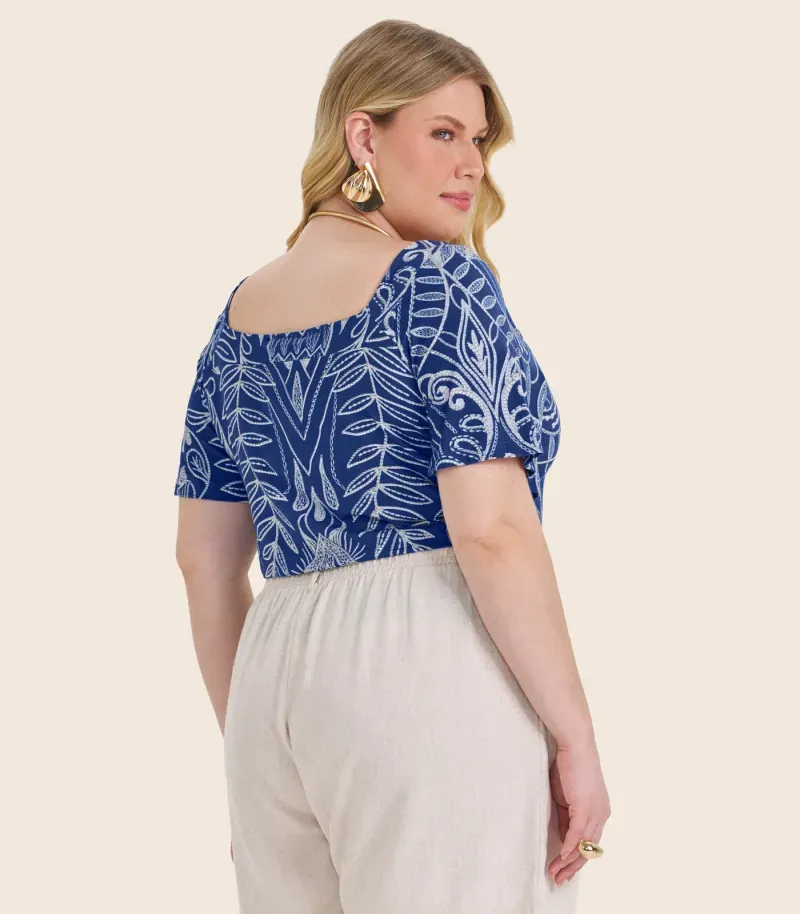 Blusa Manga Curta Plus Size Secret Glam Azul