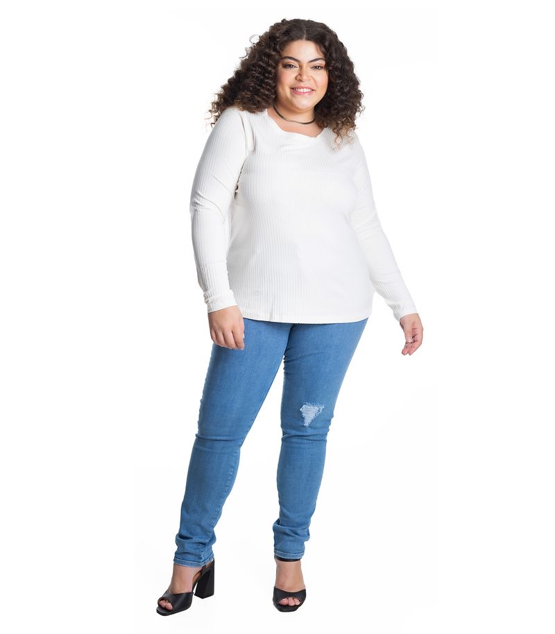 Plus SizeFemininoBlusas e CamisetasBlusa Manga Longa Ribana Canelada Secret Glam Bege