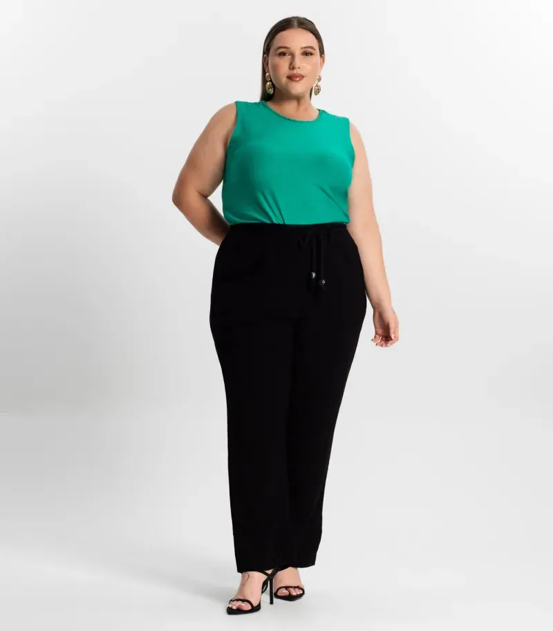 A Calça Feminina Plus Size Secret Glam é sinônimo de conforto e estilo. Confeccionada em tecido granite, oferece um caimento perfeito e suavidade ao toque. Seu cós duplo garante maior firmeza e ajuste, enquanto o cinto corda adiciona um detalhe moderno e delicado. Os bolsos faca são práticos e dão um charme extra à peça, tornando-a ideal para looks casuais ou mais sofisticados. Perfeita para quem busca uma calça versátil e cheia de personalidade!