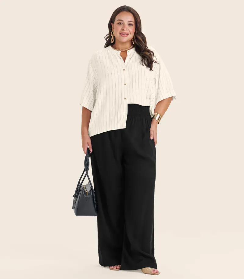 A Camisa Manga Curta Plus Size Secret Glam é confeccionada em linho fio tinto, tecido leve, fresco e de toque natural, ideal para dias mais quentes. Possui abertura frontal com botões, que facilita o vestir e adiciona charme ao visual. Com modelagem que proporciona conforto e valoriza a silhueta, é uma peça versátil, perfeita para compor looks casuais ou mais sofisticados com elegância e estilo.