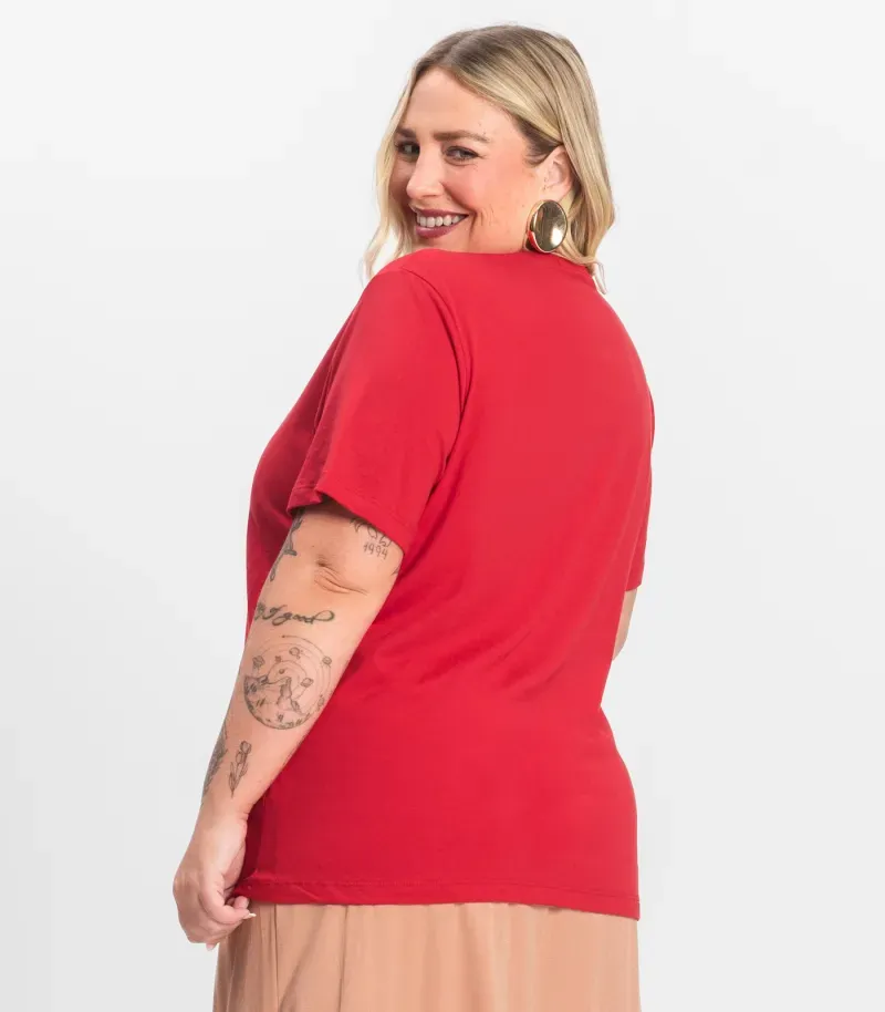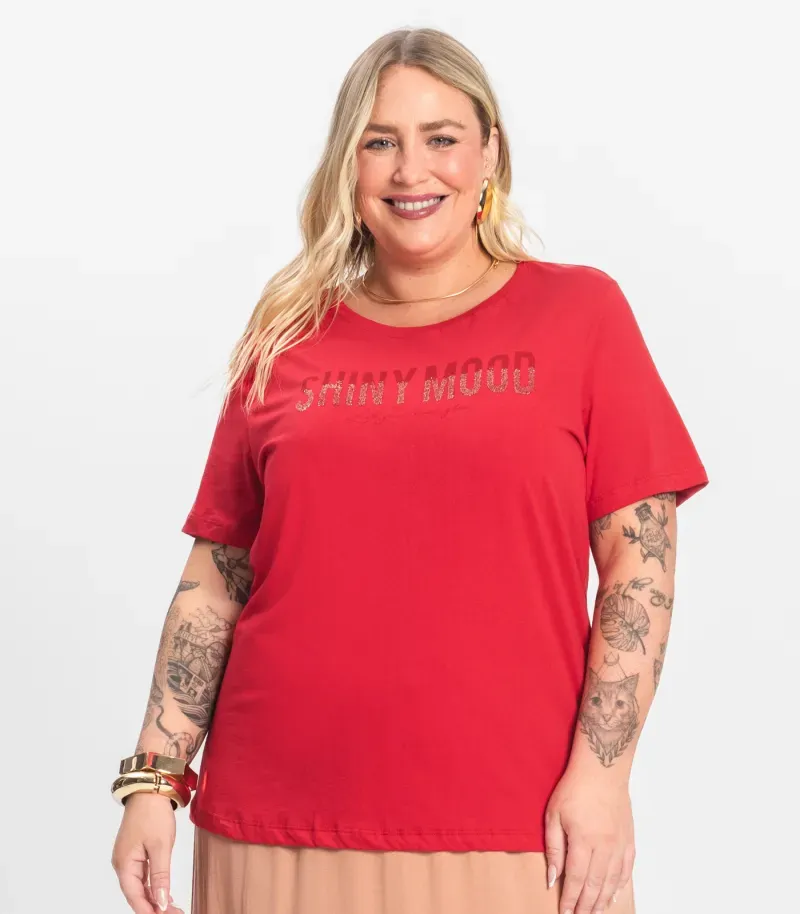 A camiseta manga curta plus size Secret Glam é confeccionada em meia malha, oferecendo conforto, leveza e excelente caimento. O destaque fica por conta da estampa localizada com aplicação de esfera e foil, que adiciona brilho e um toque moderno à peça. Ideal para compor looks casuais com estilo, valoriza a silhueta com praticidade e charme. Uma opção versátil e cheia de personalidade para o dia a dia da mulher plus size.