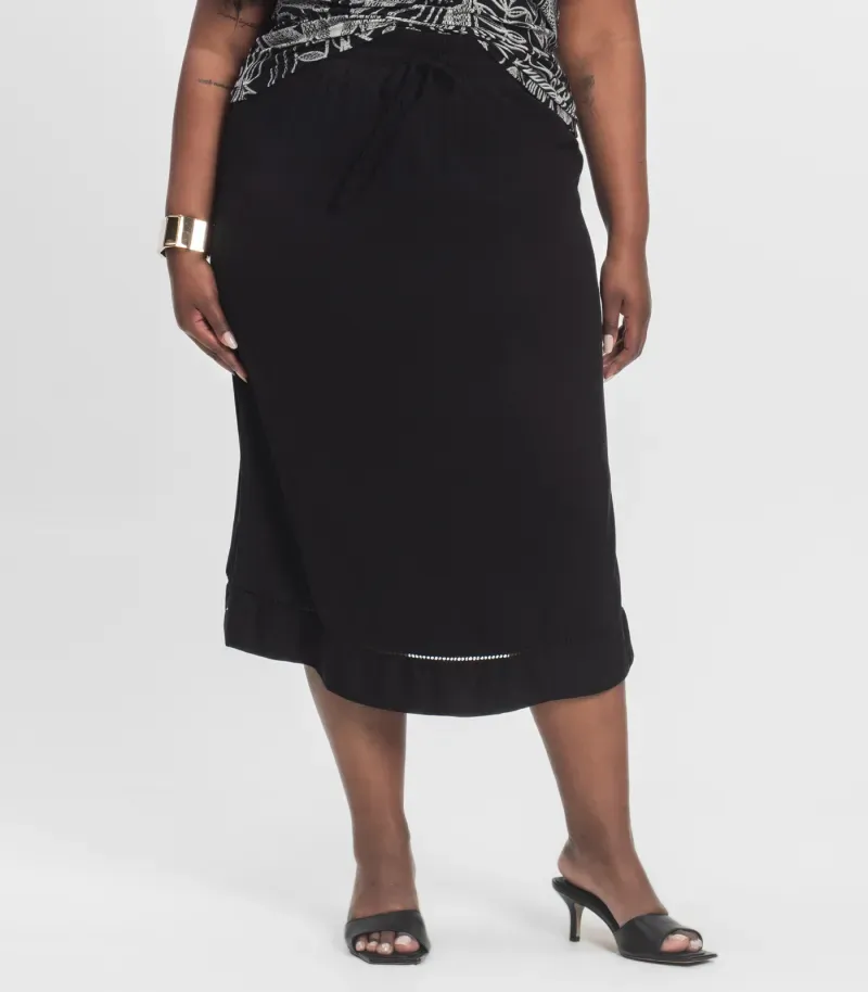A saia midi plus size Secret Glam é confeccionada em viscose Double Yarn Solid, proporcionando toque macio e caimento fluido. Com entremeio delicado, adiciona um charme especial ao design, valorizando a peça com sofisticação. Seu comprimento midi alia conforto e elegância, ideal para diversas ocasiões, do dia a dia a eventos mais especiais. Versátil e estilosa, é uma escolha perfeita para mulheres que buscam conforto e beleza na moda plus size.