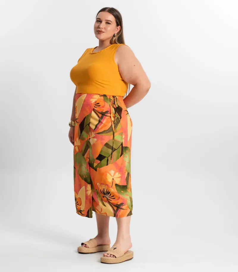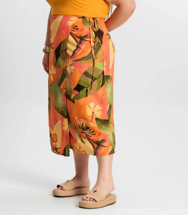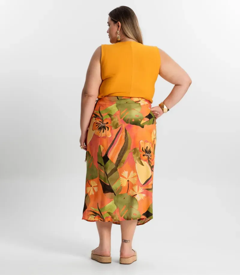 A Saia Midi Plus Size Secret Glam é a escolha perfeita para quem busca elegância e conforto. Confeccionada em viscose Khyara, um tecido leve e fluido, ela proporciona um caimento perfeito e conforto durante todo o dia. O modelo transpassado, aliado ao friso para amarração preso na saia, traz um toque sofisticado e moderno. Sua estampa rotativa confere um charme exclusivo e versatilidade, tornando a saia ideal para diferentes ocasiões, do dia a dia a eventos mais formais.