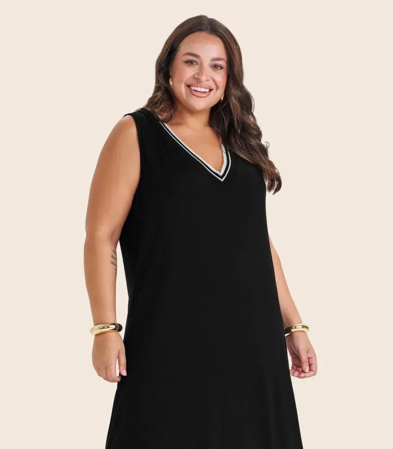 O Vestido Plus Size Secret Glam é confeccionado em viscose maquinetada, tecido leve e confortável com textura delicada. A peça destaca-se pelo decote em V, que valoriza o colo com elegância, e pela fenda sutil, que acrescenta charme e movimento ao visual. Com modelagem que realça as curvas, é ideal para ocasiões que pedem estilo e sofisticação, sem abrir mão do conforto. Perfeito para compor looks modernos e femininos.